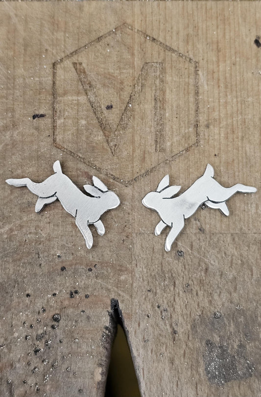 Silver rabbit/hare earrings, handmade layered oxidised silver. Spring or Easter themed