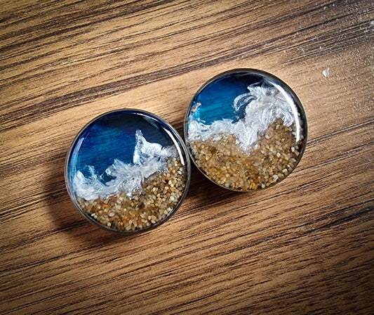 Seashell plugs with sand plugs. FOR PAIR. Real natural seashells in a resin plug